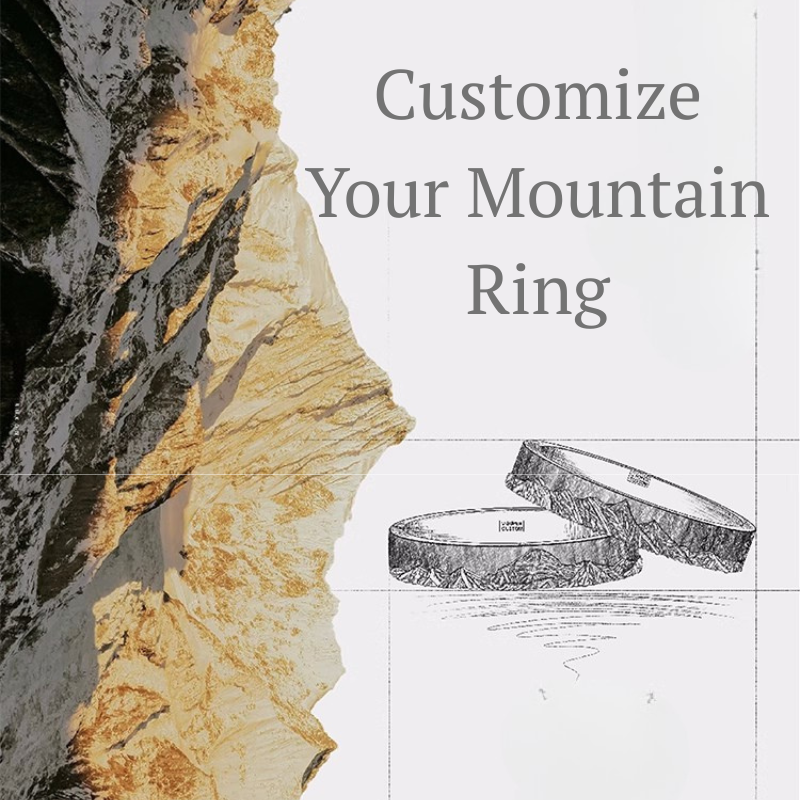 ①Choose the ring style you want ②Upload the picture of the mountain you want to customize ③Match the designer ④Confirm the 3D model ⑤Production