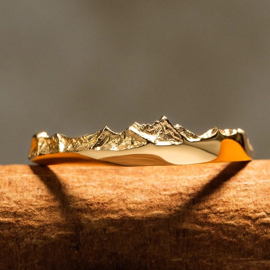 【Mt. Kailash】Gold Hand-Engraved Mount Mens/Womens Wedding Ring
